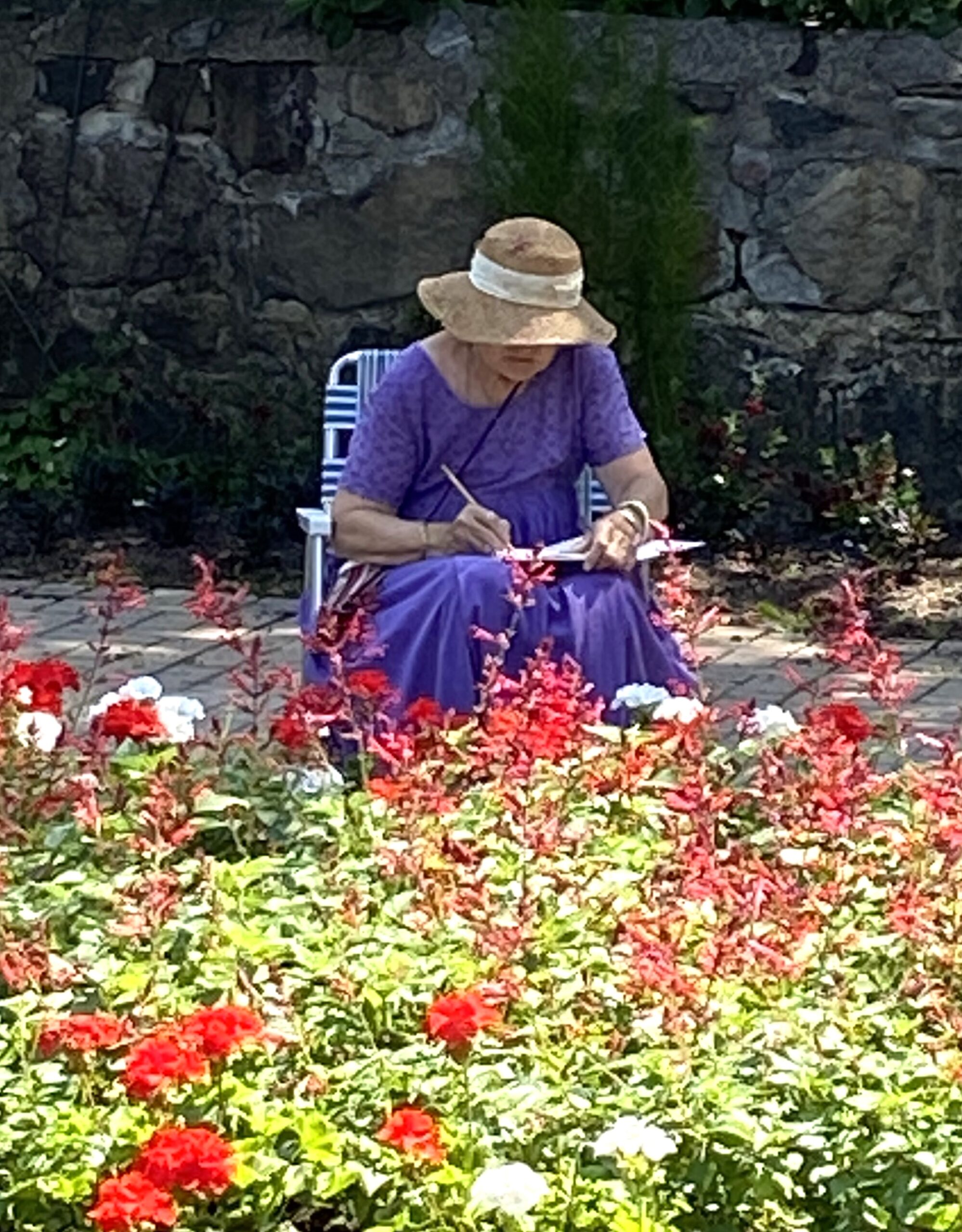 Discover a more intimate look at nature by going out into the garden and sketch /draw the flowers in front of us. Learn tips and tricks that help break down the structure of roses and other flowers. All supplies included. Strongly recommended to bring a folding chair; garden seating is limited. No experience needed!